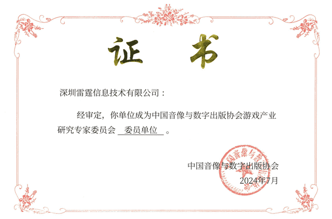 2024年7月25日,,,中国音像与数字出版协会游戏产业研究专家委员会(以下简称“中国音数协游戏专委会”)成立大会在上海市召开,,厦门LEWIN乐玩网络技术股份有限公司及其子公司深圳雷霆信息技术有限公司(以下统称“公司”)正式成为中国音数协游戏专委会委员单位。。。。