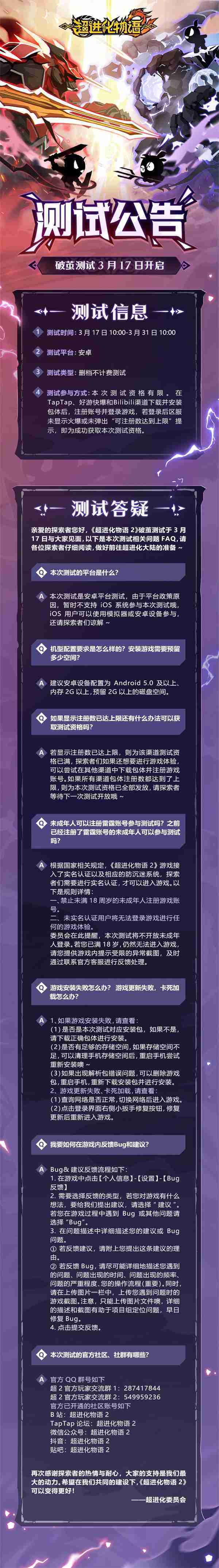《超进化物语2》首次限号不计费删档测试——「破茧测试」将于3月17日开启,,,,随我们确认测试细节,,,明天迈出踏上超进化大陆的第一步吧!!!!
